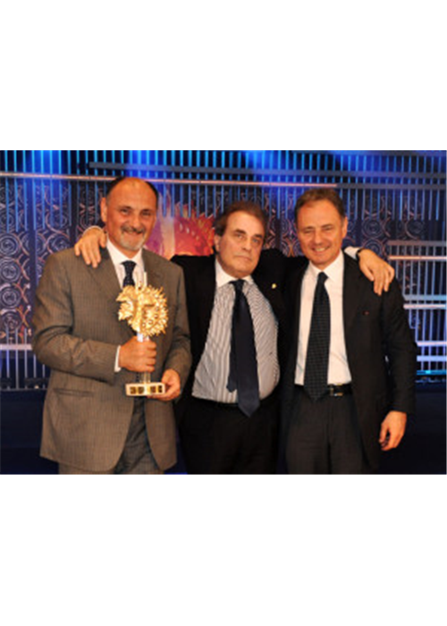 Sul palco a ricevere l’importante riconoscimento Andrea e Cesare Cecchi (nella foto con Franco Maria Ricci).